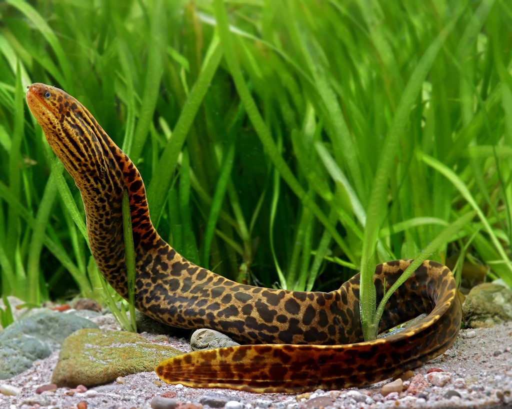 Nome popular: Moreia de água doce Manchada — Inglês: Freshwater moray, Spotted freshwater moray