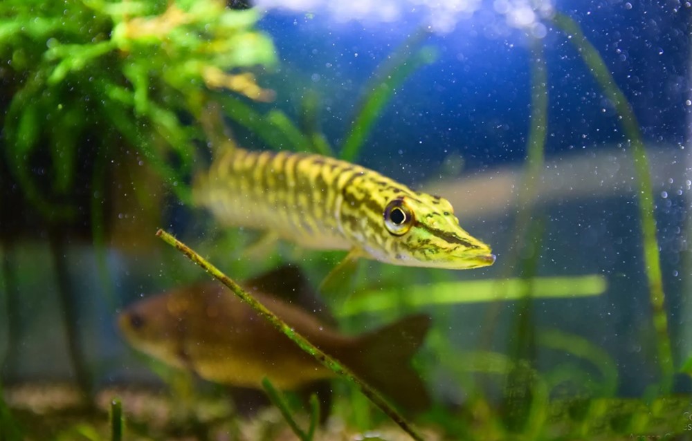 Espécime sub-adulto de Esox lucius em aquário — Foto de autoria desconhecida (CCBY-NC)