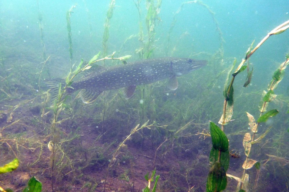 Espécime adulto de Esox lucius em seu ambiente natural — Foto de autoria desconhecida (CCBY-NC)